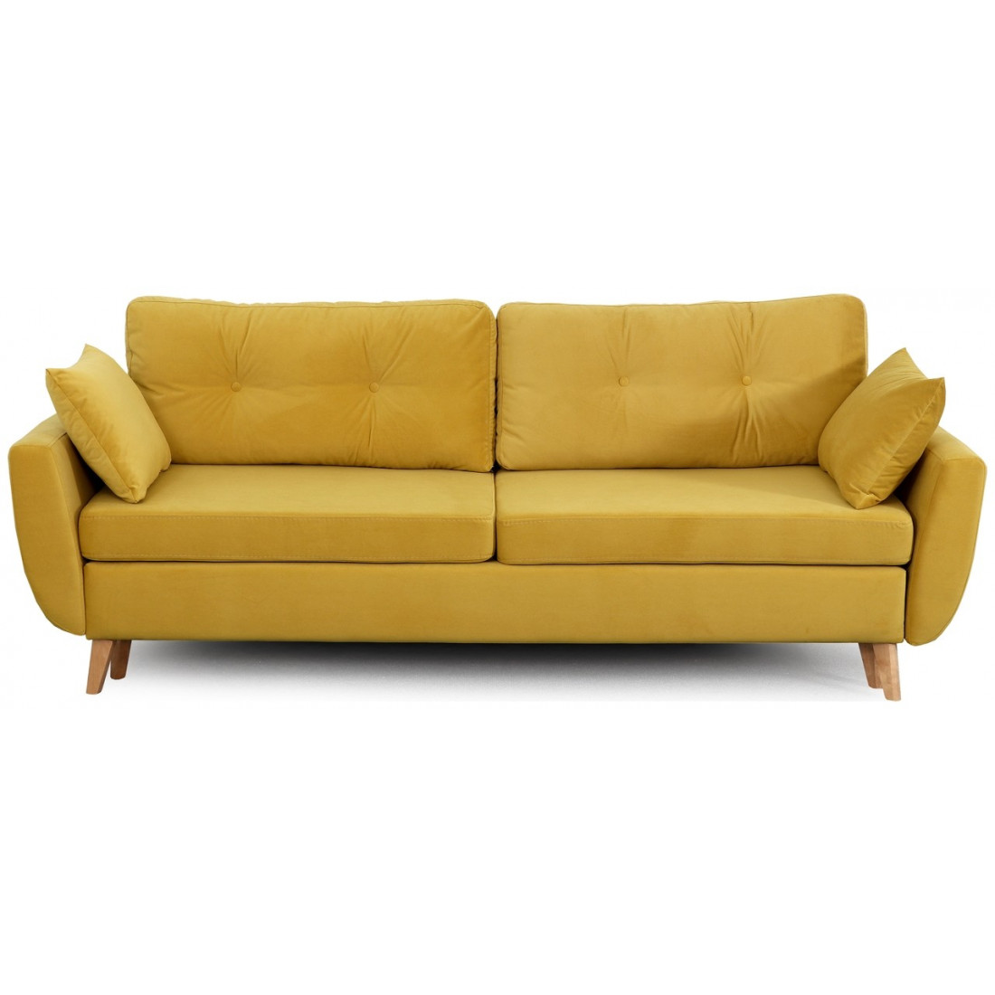 Благодаря тому, что основание модели приподнято над полом, диван не выглядит «тяжелым». Напротив, конструкция добавляет «воздуха» в интерьер. Опоры дивана изготовлены из натурального дерева (береза).