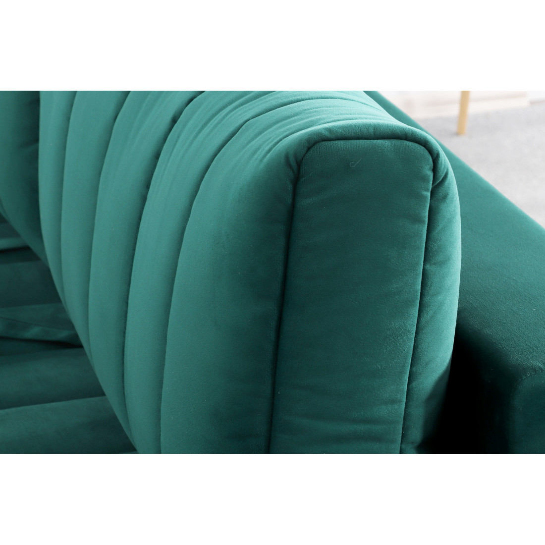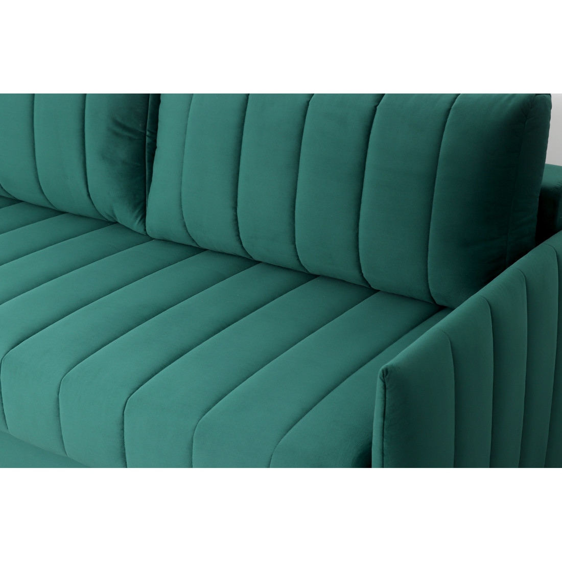 Подушки, сиденье и подлокотники дивана оформлены модной вертикальной стёжкой в современном стиле.
