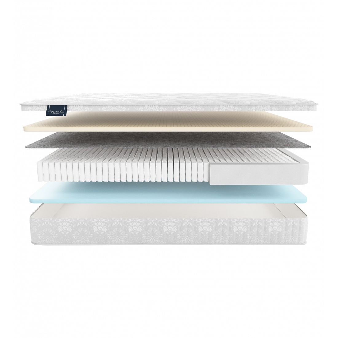 Матрас снабжен независимым пружинным блоком «Мультипакет» (1040 пружин на спальное место), который создает анатомический и ортопедический эффект.