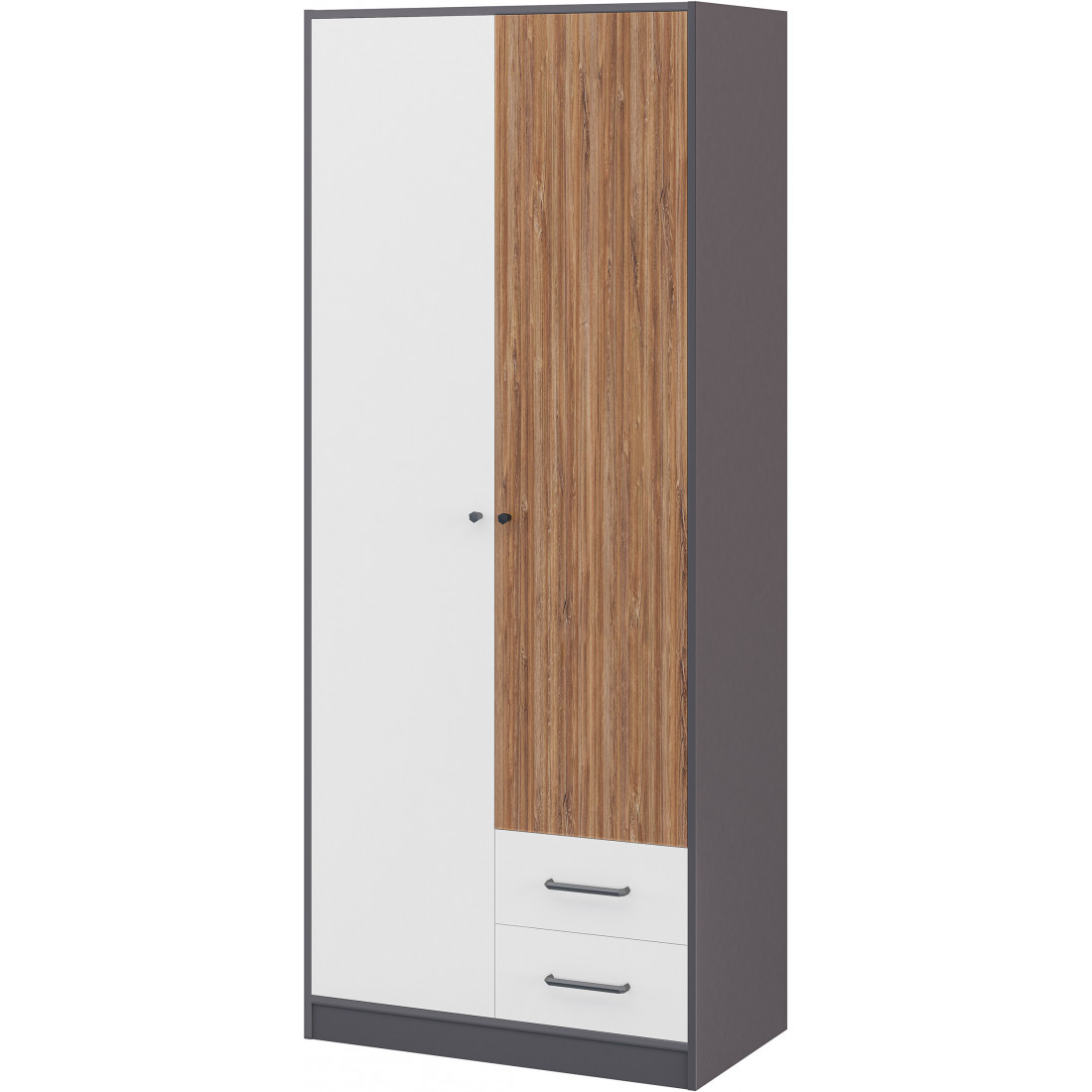 Цветовая палитра коллекции Мальма: белый, графит, Дуб Стирлинг. Спокойные оттенки мебели станут прекрасным фоном для ярких аксессуаров и вещей, помогут избежать лишнего визуального шума в интерьере.