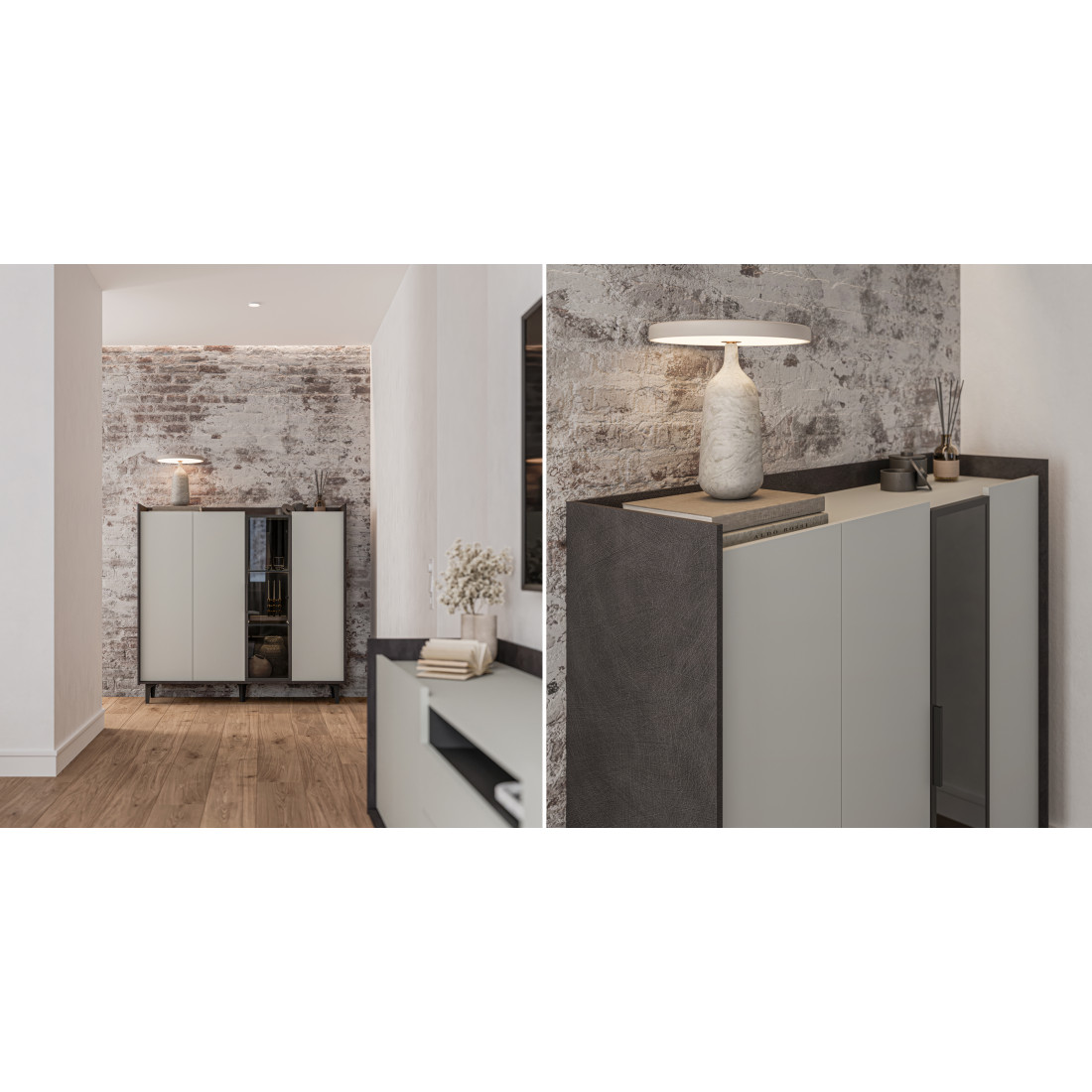 Элегантный шкаф Модена создает изысканную атмосферу в вашей гостиной. Предлагается в трех стильных вариантах цветов: Белый-Дуб Элисон, Лунный камень-жемчуг, Металл Бруклин-лунный жемчуг. Ножки из металла обеспечивают прочную поддержку. Темное стекло добавляет утонченности дизайну. Шкаф имеет три отделения с полками для удобного хранения, а также одно отделение со стеклянными полками и стеклянным фасадом, придающим ему элегантность. Идеальное решение для организации пространства в вашей гостиной
