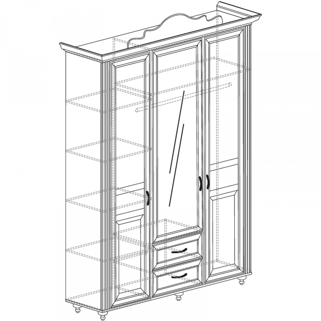 Фасады: МДФ, декор – кремовый белый, рисунок, патина, стекло с фацетом и рисунком