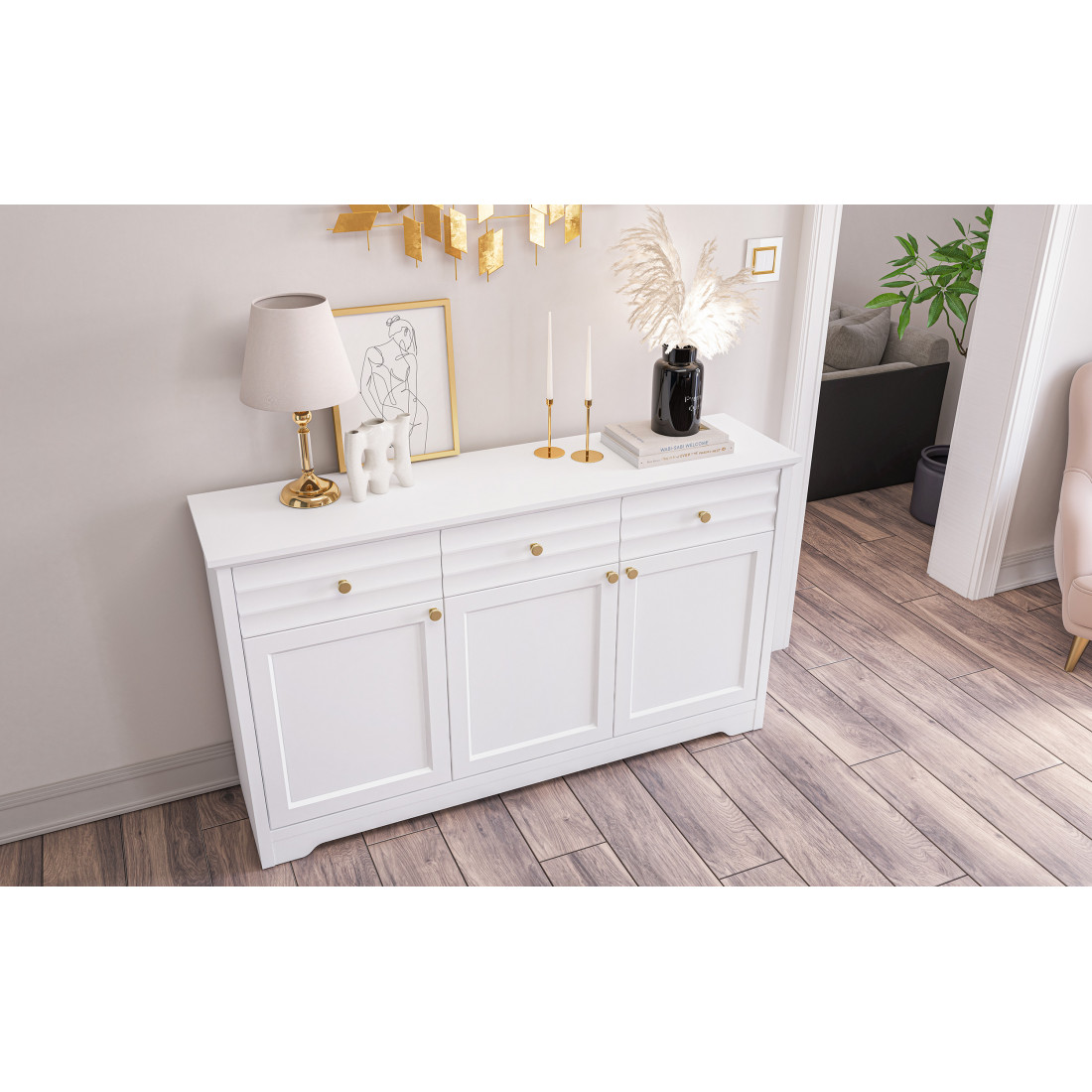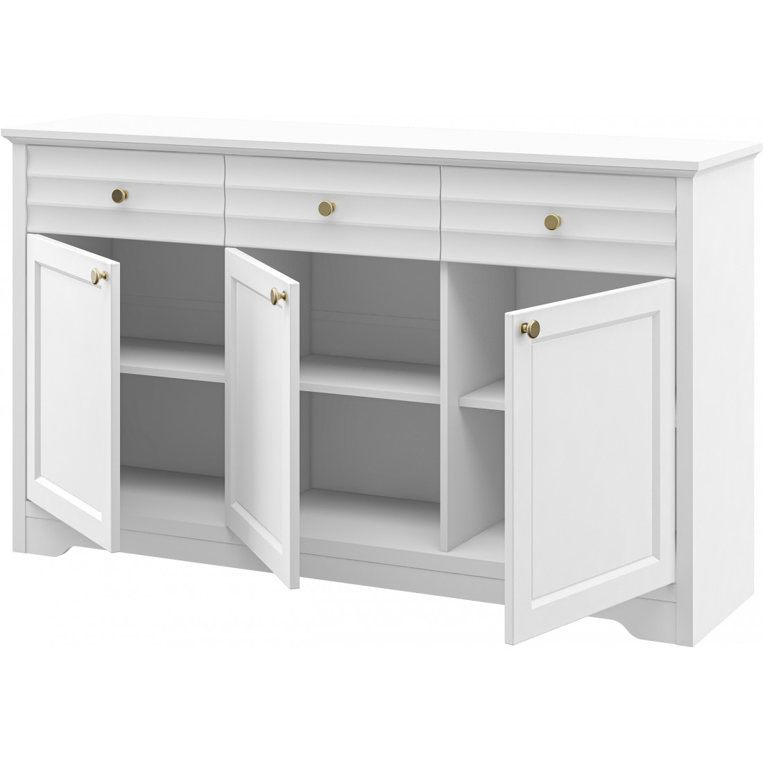 Денвер – это новая коллекция корпусной мебели для спальни, гостиной и столовой. Прямые строгие линии в сочетании с легкой горизонтальной волной на фасадах придают мебели элегантный и уверенный вид. Белый матовый цвет мебели, любимый многими за универсальность, можно сочетать с любым оттенком стен и пола. Округлые металлические золотые ручки разбавляют строгий и лаконичный вид фасадов и добавляют интерьеру утонченности.