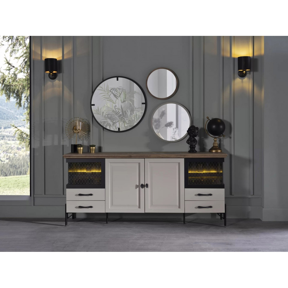 Зеркала для буфета "Палвин" выполнены в трех оттенках, как и все остальные элементы данной коллекции. Данные зеркала будут отлично смотреться не только рядом с буфетом, но и как отдельный элемент интерьера в любой другой комнате