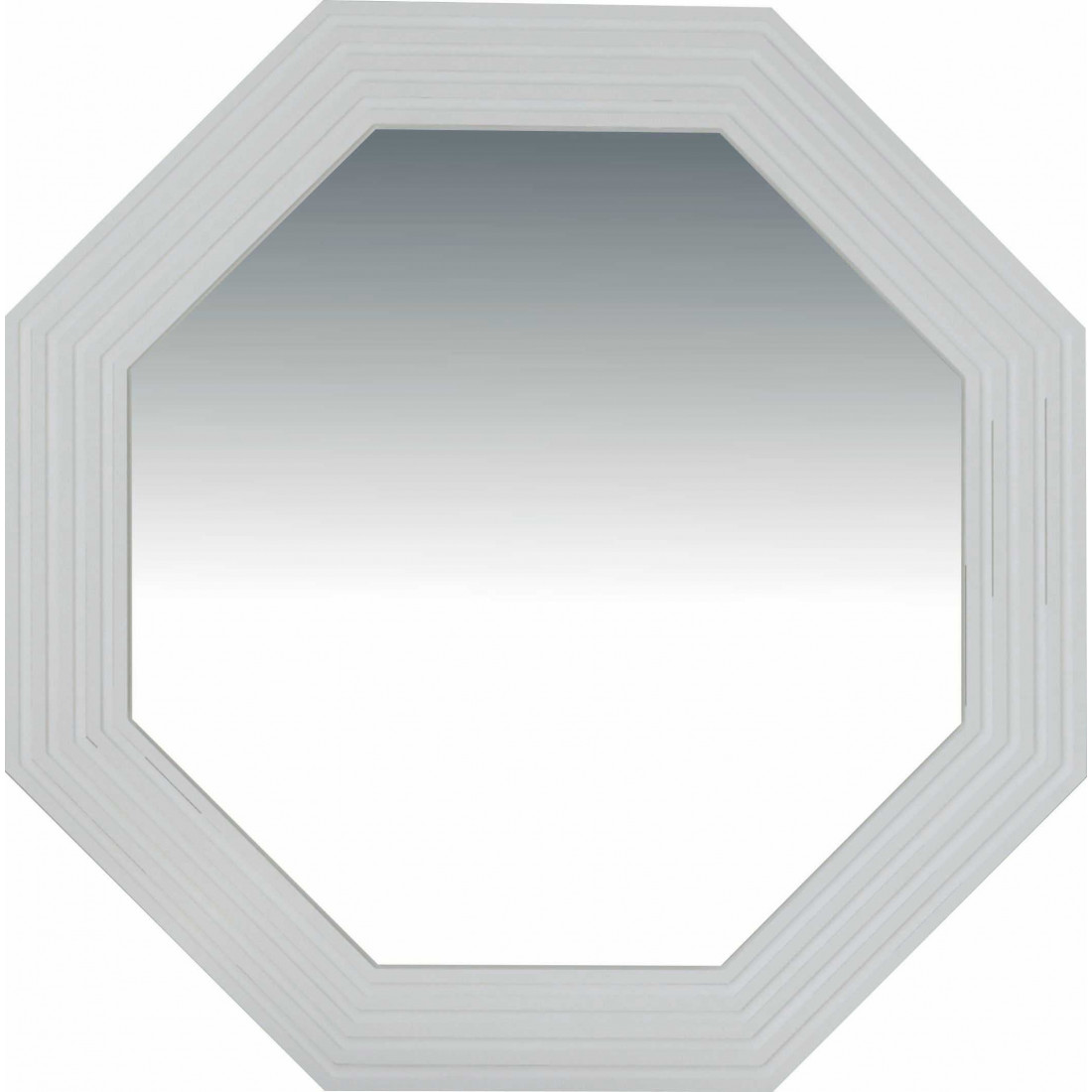 -Подложка зеркала выполнена из МДФ с декоративной фрезеровкой в виде полос по контуру и окутана плёнкой ПВХ цвета «Белый матовый»;